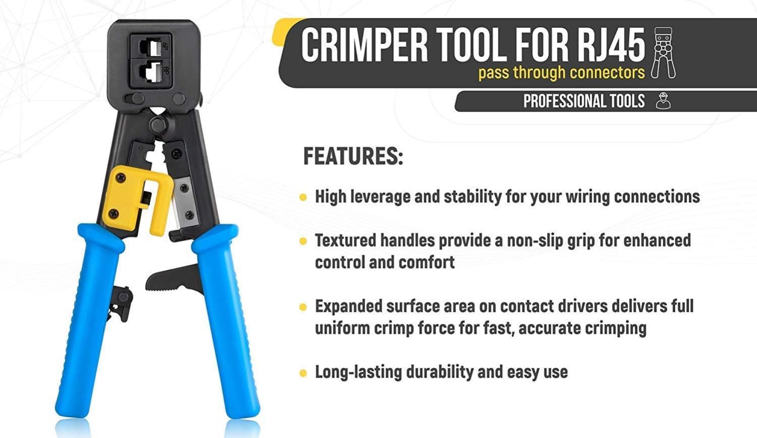 0 Review Of Product Crimping tool RJ45 for Pass Through Connector Cut Strip Crimp Electrical Cable Heavy Duty Crimper for RJ11 RJ45 Plugs Professional Networking Cat5 5e Cat6 Crimp Tool