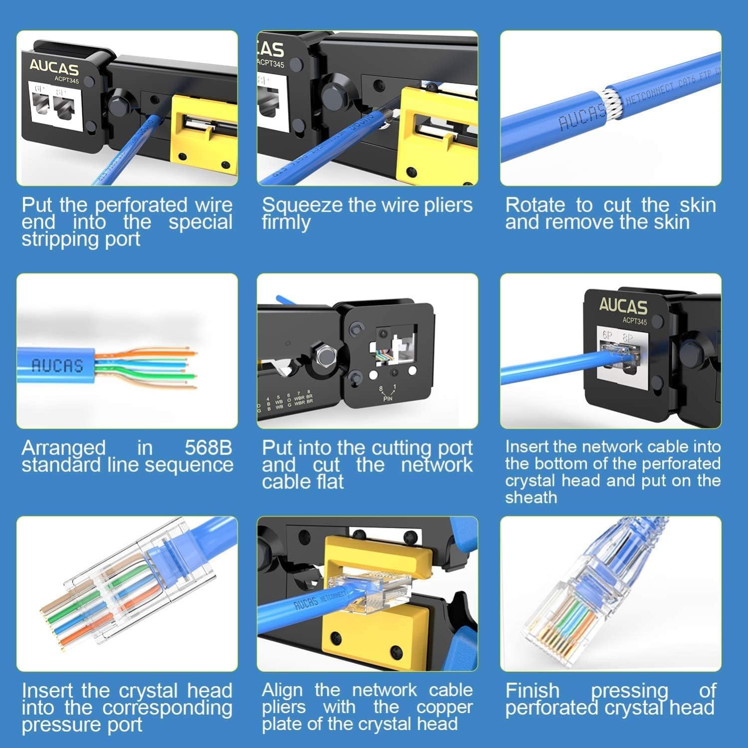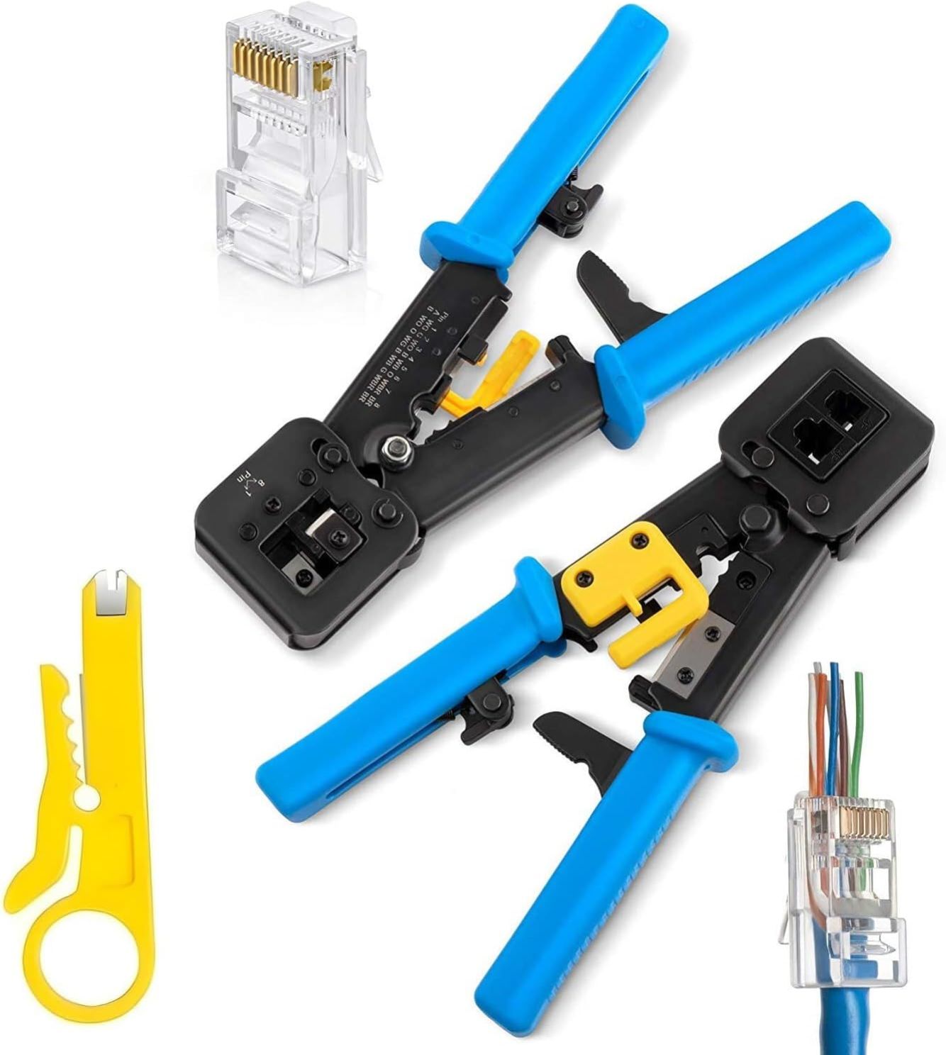 crimping tool RJ45 for Pass Through Connector Cut Strip Crimp Electrical Cable Heavy Duty Crimper for RJ11 RJ45 Plugs Professional Networking Cat5 5e Cat6 Crimp Tool